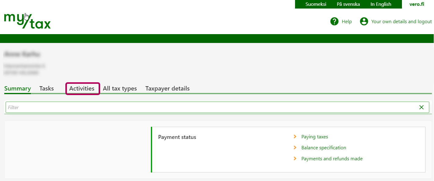 Select the Tax matters tab on the MyTax home page.