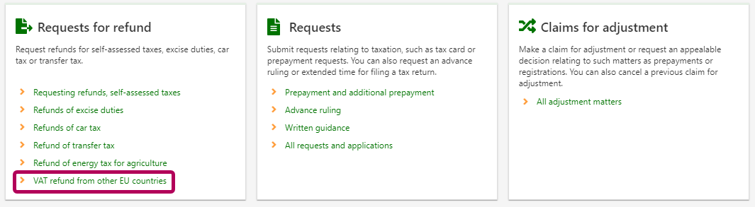 Scroll down to Refund applications. Click VAT refund from other EU countries.