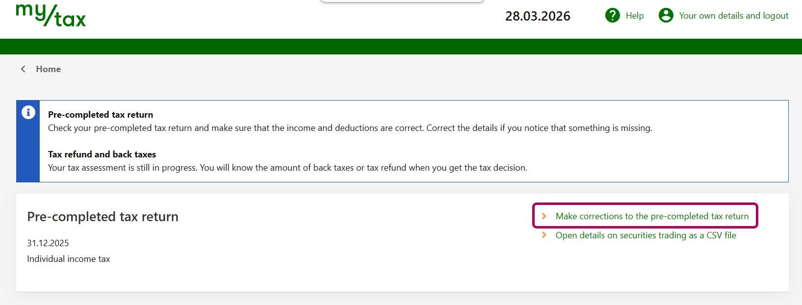 From 14 April on, when you log in to MyTax you will activate Suomi.fi Messages. Tax correspondence will be delivered electronically only, in MyTax. Read more about the changes.