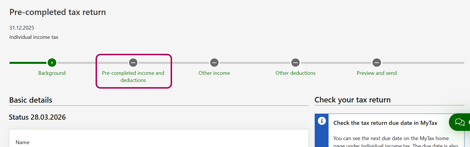In the first stage, you will see your own details. Go to the section Pre-completed income and deductions.