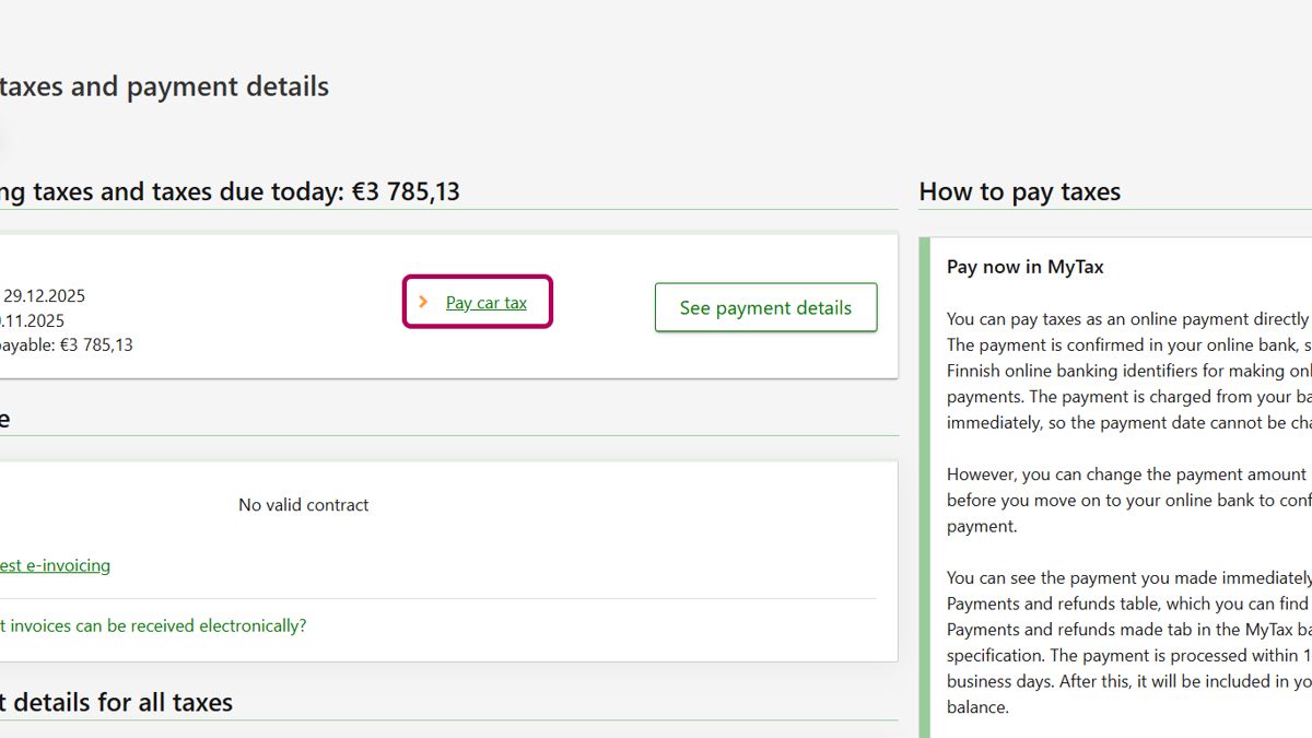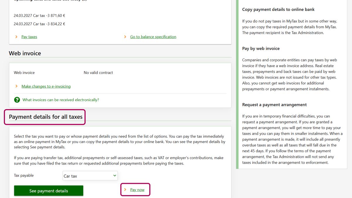 You can pay car tax in MyTax or in your own e-bank, for example.