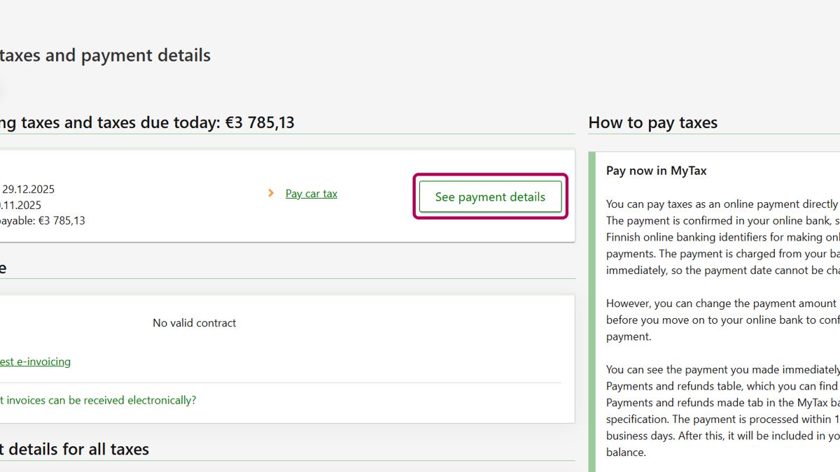 If you do not see the tax you are looking for, go to Payment details for all taxes and select Car tax in the selection list.