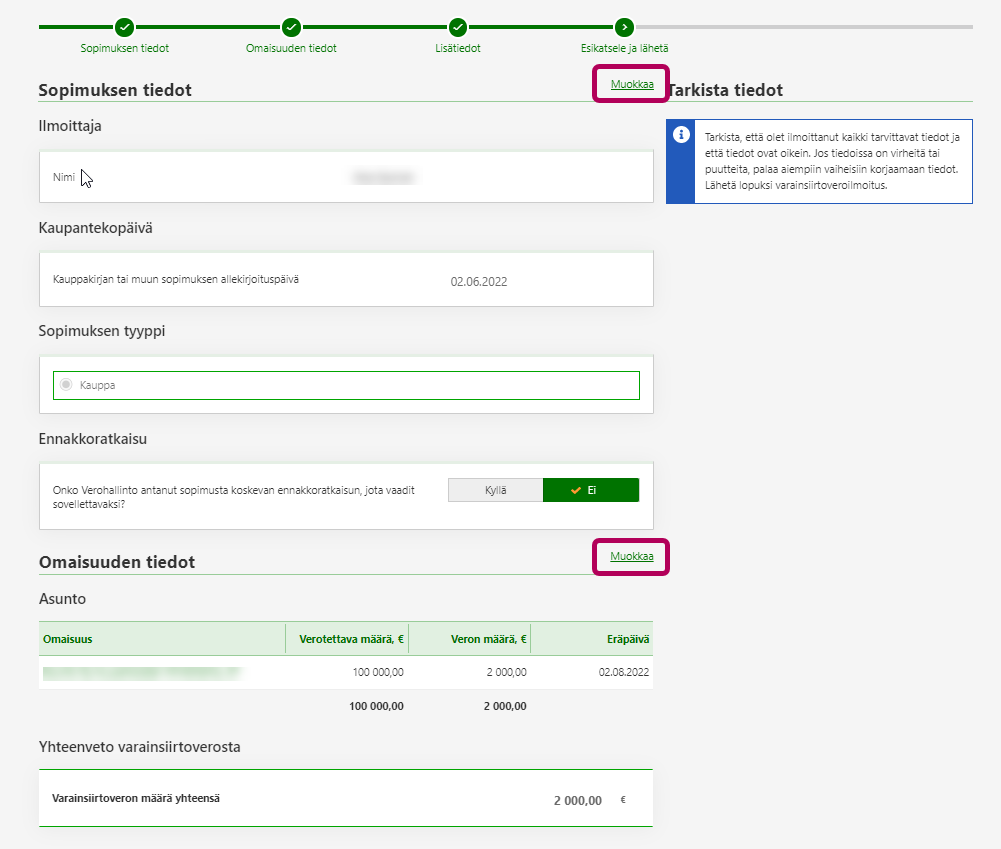 Check the details on the transfer tax return. If necessary, you can make further changes by clicking Edit.