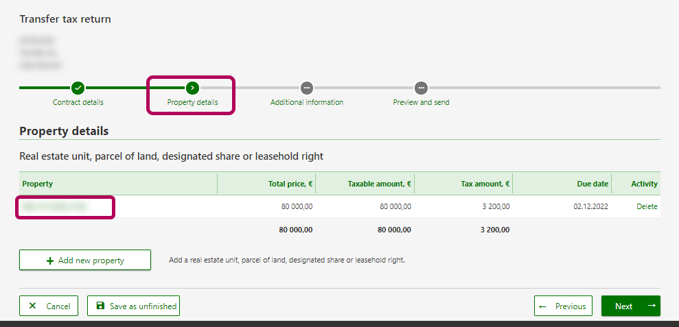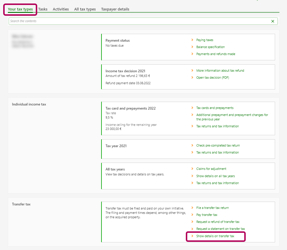 To do this, go to Transfer tax on the home page and select Show details of transfer tax.