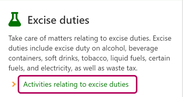 Go to Excise duties and click the link Activities relating to Excise duties.
