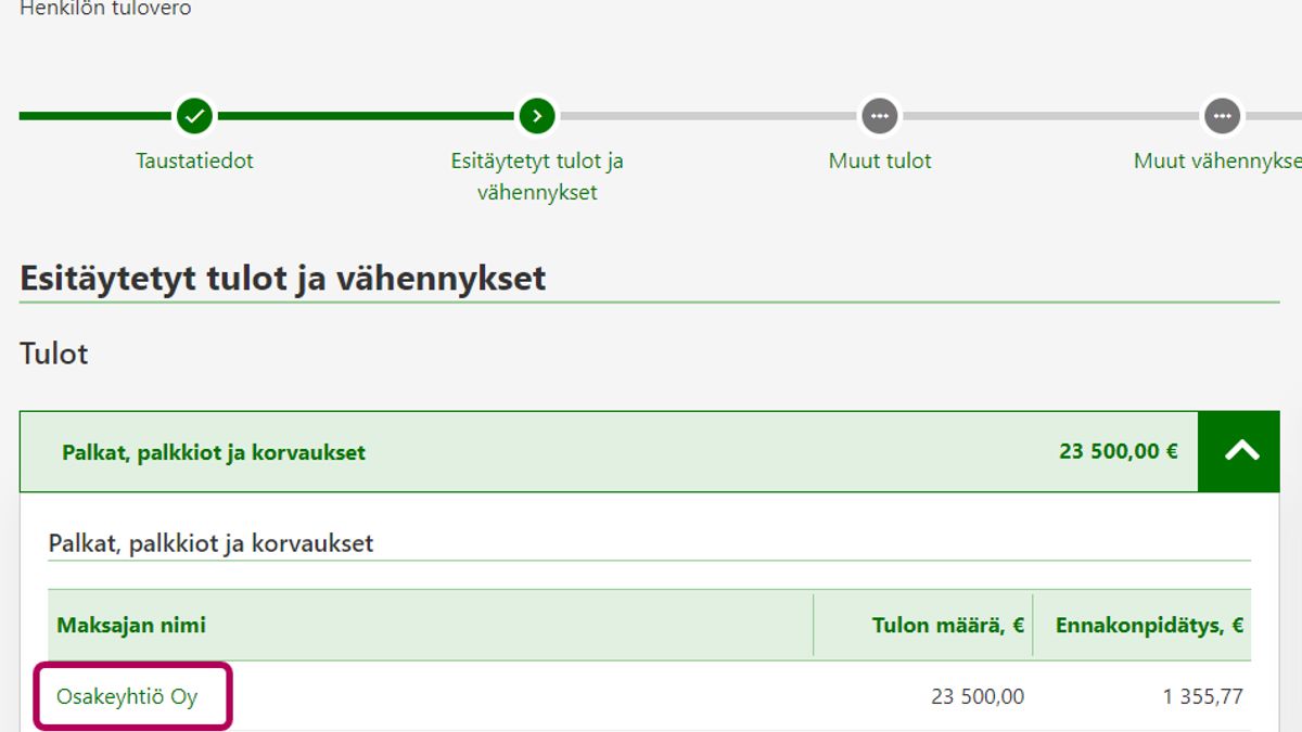 Ilmoita eri maksajilta saadut tulot erikseen. Valitse tätä varten uudestaan painike Lisää uusi maksaja.
