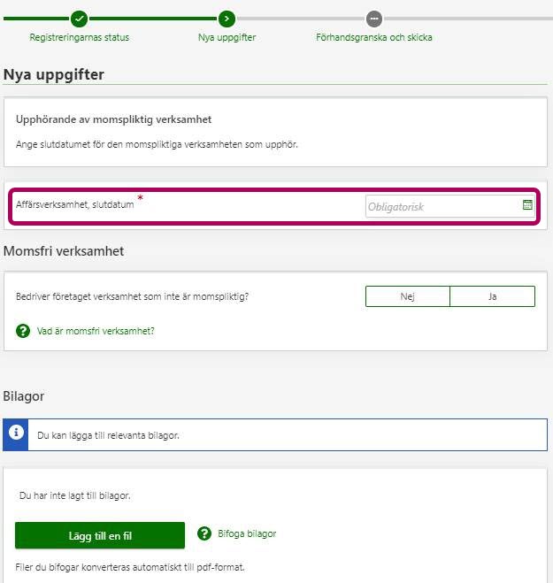 Ändra registeruppgifter endast för sådana register som du vill få ändring till eller avsluta.