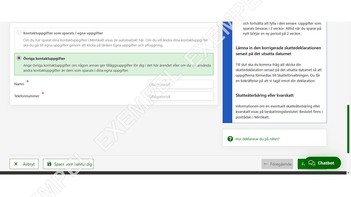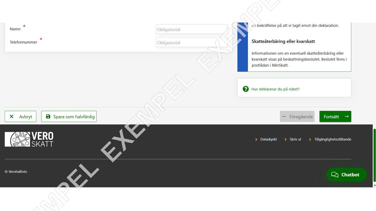 I vissa situationer kan Chattbot-knappen hamna ovanpå en annan knapp som behövs till exempel för att gå till nästa fas i skattedeklarationen eller för att skicka den.