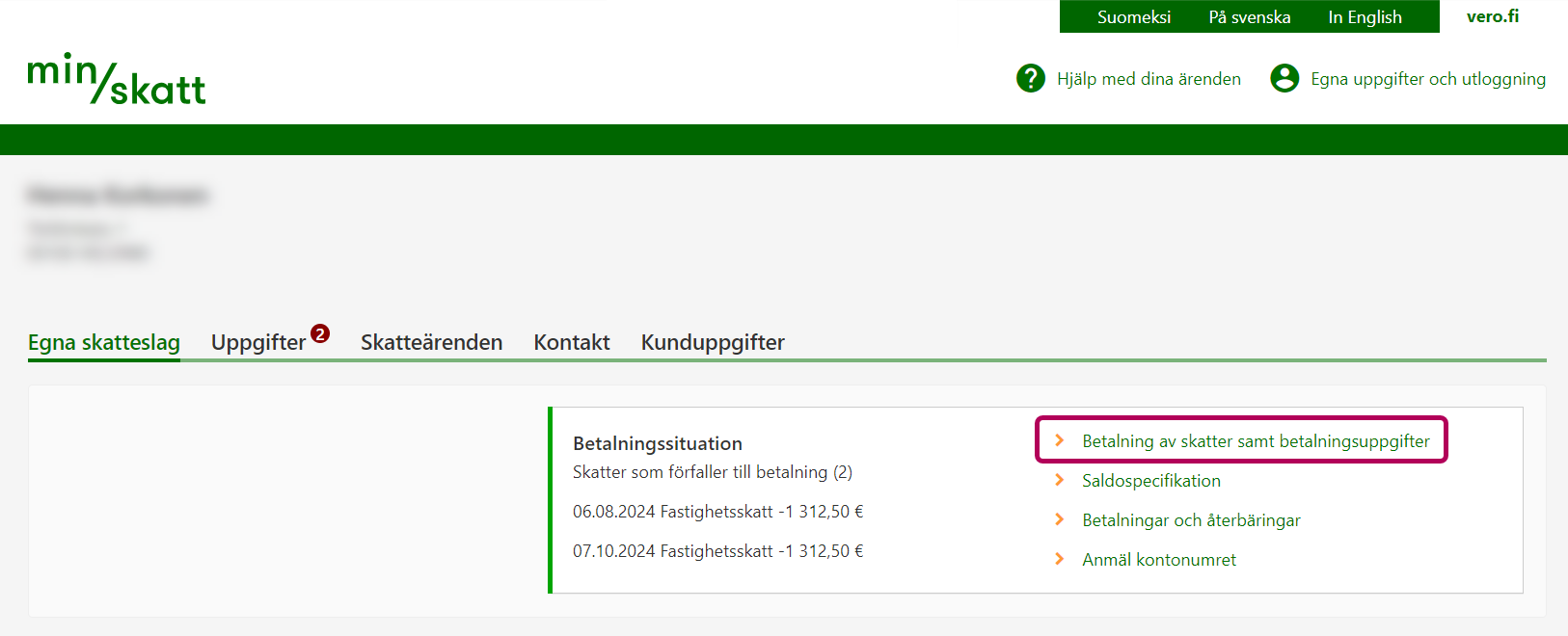 Så här betalar du skatter och kontrollerar betalningsuppgifter i MinSkatt