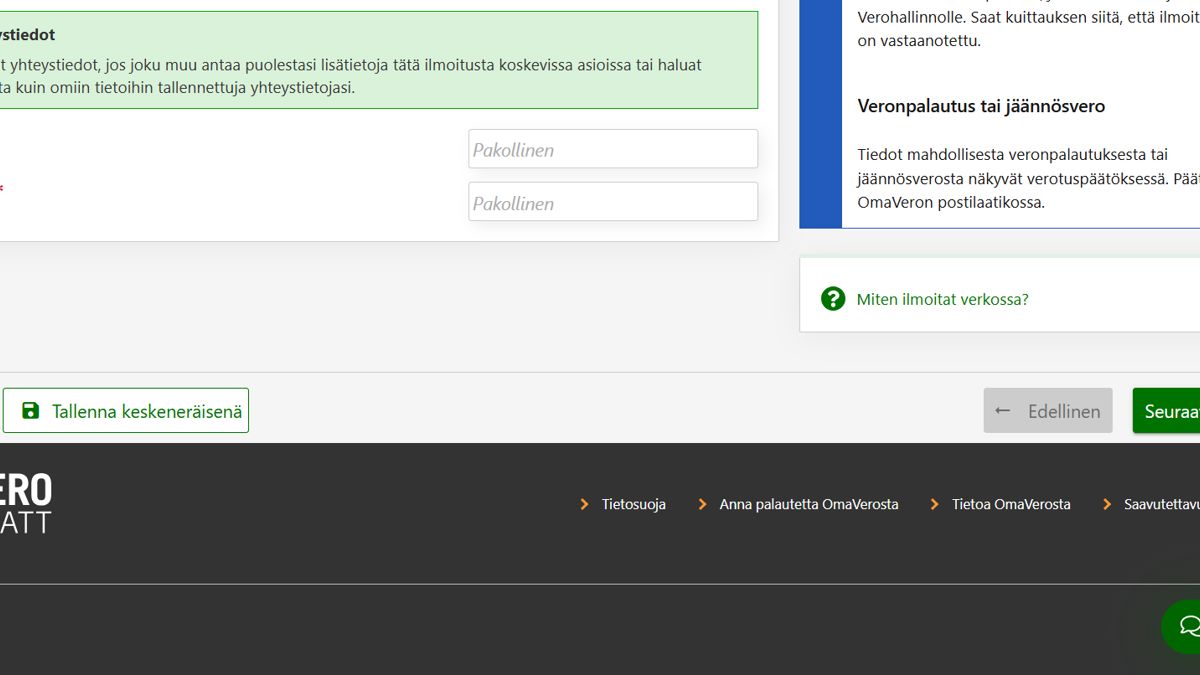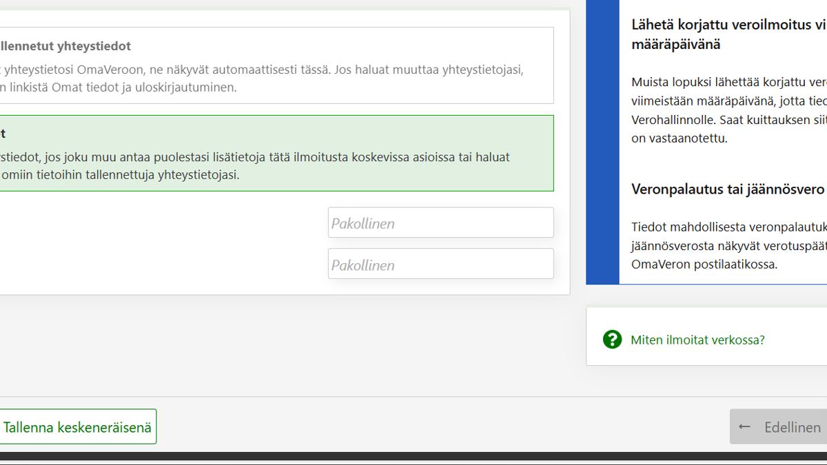 Ilmoittamasi tiedot eivät tallennu automaattisesti OmaVeroon, kun esimerkiksi täydennät veroilmoitustasi.