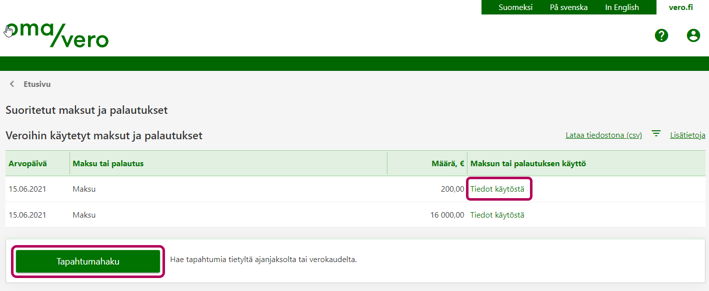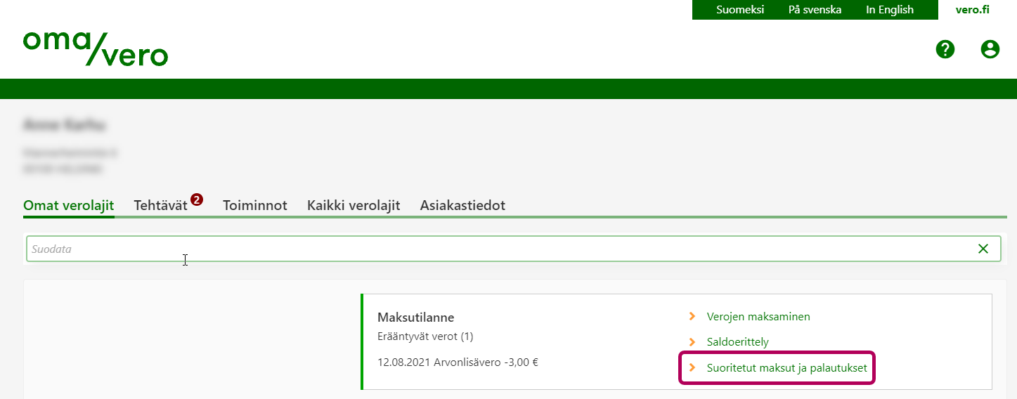 Näin tarkastelet suoritettuja maksuja ja palautuksia OmaVerossa