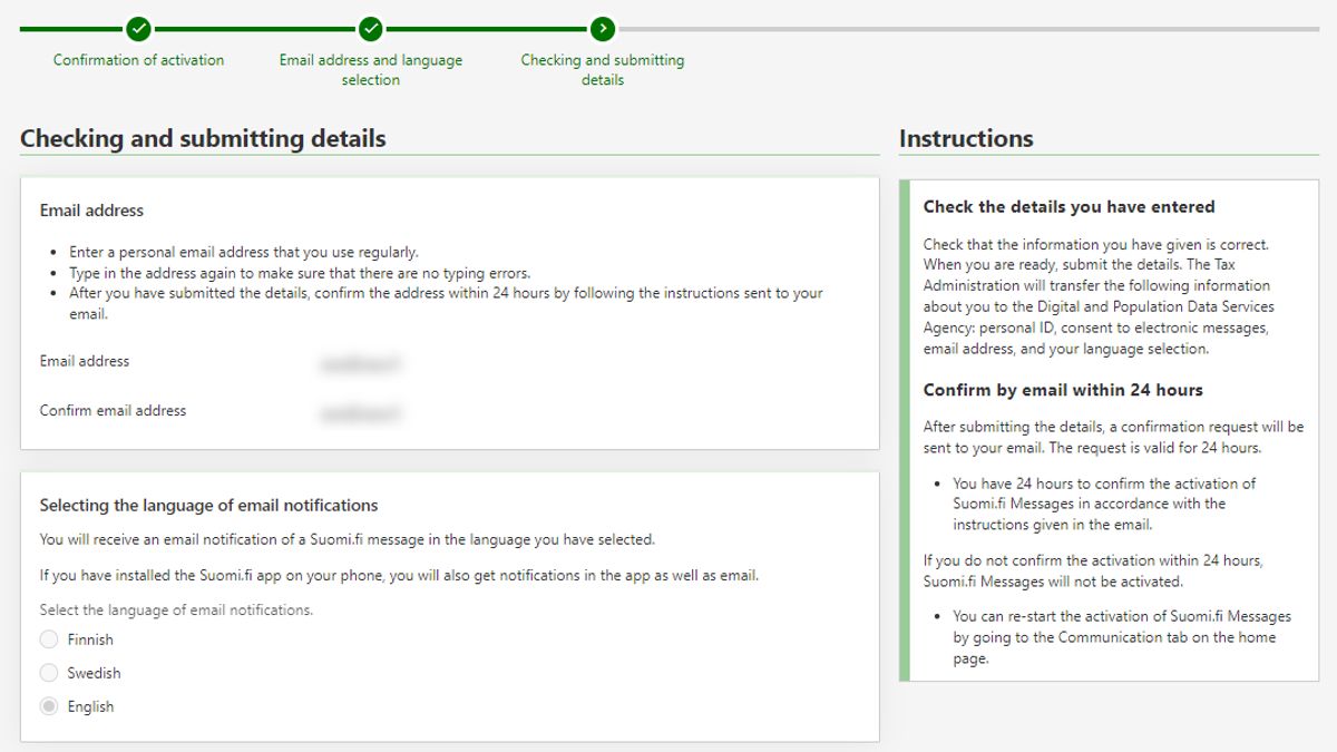 Please note that when activating Suomi.fi messages at login to MyTax, there will be 1 to 2 days of delay before your activation is updated fully.