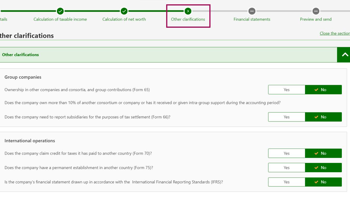 You can inform the Tax Administration of any other matters that have an impact on your company’s or cooperative’s tax assessment here.