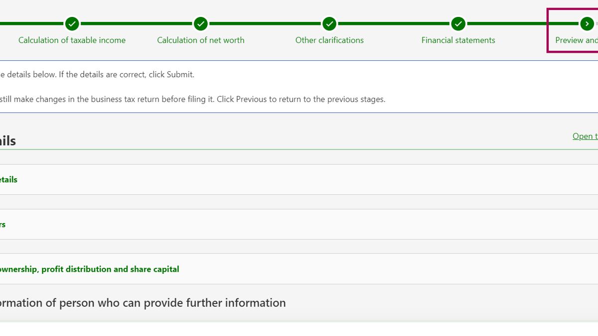 If your company has not yet prepared its financial statements by tax-return due date, you can submit more enclosures later. Use e-filing. If you are a user of MyTax and you need to add something to the tax return later, you can do so in MyTax.