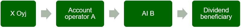 If an Authorised Intermediary has assumed responsibility for dividends paid by a publicly listed company for nominee registered shares, the payor must report the Authorised Intermediary’s identification information and information on the dividends for which it has assumed responsibility. In this case, the Authorised Intermediary is responsible for reporting information on dividend beneficiaries on its annual information return. In situations where there is no Authorised Intermediary in the custody chain that would have assumed responsibility for dividends, the payor must report the identifying information of the dividend beneficiary (section 15e of the Act on Assessment Procedure, and section 41, subsection 2 of the Tax Administration’s decision on the general information reporting requirement). If the payor cannot obtain the dividend beneficiary’s identification information from the custody chain and cannot therefore report it on its annual information return, tax at source of 35 % must be withheld on the dividend (section 7, subsection 2 of the Tax at Source Act).