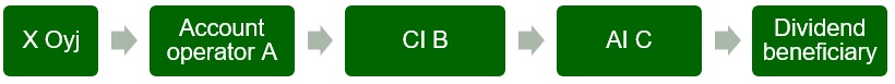 Nominee registration means that a book entry security is entered into the book-entry system in the name of a custodian of the nominee registration in place of the actual owner of the book entry security. Therefore, the shareholder is not disclosed in the shareholders' register if the shares have been entered in the name of the custodian of the nominee registration. For this reason, the payor must, when paying dividends to nominee registered shares, otherwise verify that the party presenting a tax at source card is entitled to dividends and tax treaty benefits. For example, the dividend beneficiary can in addition to a tax at source card provide the payor with their certification that they are the beneficial owner of the dividend in question as referred to in the tax treaty and that the shares are not part of any arrangement that might affect the interpretation of the tax treaty. In this case, the payor must verify that the dividend beneficiary’s certification is reliable. The intermediary who holds the shares in question can, on the payor’s behalf, obtain the dividend beneficiary’s certification and verify its reliability. However, the payor must verify that it can report information on the dividend beneficiaries on its annual information return and, if requested by Tax Administration, submit evidence and documentation on how the beneficiary’s right to the tax treaty benefit was verified.