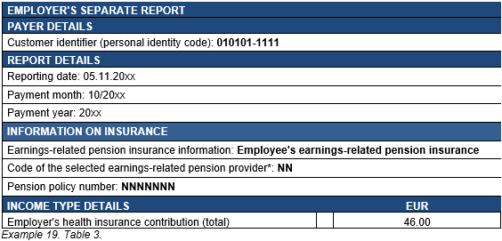 Note that if you need to pay the employer’s health insurance contribution, you should submit the employer’s separate report in addition to the earnings payment report. For further instructions, see Chapter 9 Employer's separate report on the employer’s health insurance contribution.
