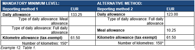 Example 12: A household pays a daily allowance and kilometre allowance to the employee. In addition to the information specified in Chapters 7 and 8, the following data must be reported on these to the Incomes Register.
