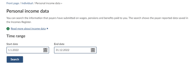 You can search for and view your income data by signing in to the Incomes Register’s e-service. At the service you can also see your previously submitted reports.