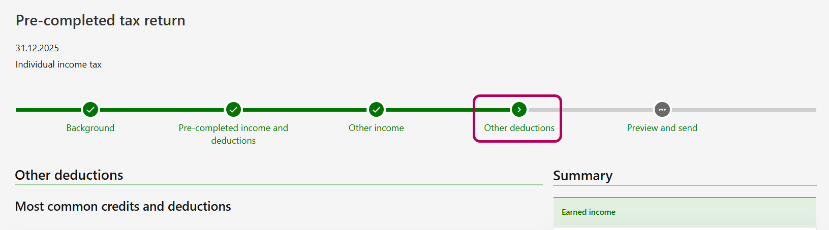 In the first stage, you will see your own details. Go to the section Pre-completed income and deductions.