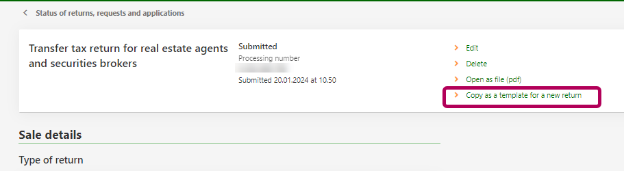 - If the status of the return is Received, you can copy a previous return as a template that you can edit.