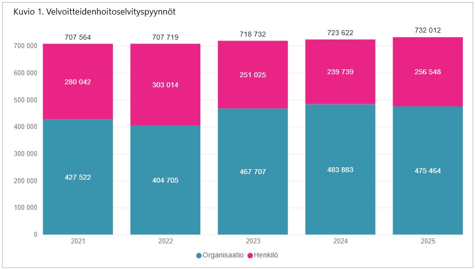 Velvoitteidenhoitoselvitysraportin tiedot kuvaavat organisaation tai organisaatiohenkilön lakisääteisten velvoitteiden hoitamista. Raportti sisältää toimintaa, taloutta sekä veroihin ja lakisääteisiin eläke-, tapaturma- ja työttömyysvakuutusmaksuihin ja Tullin kantamiin maksuihin liittyvien velvoitteiden hoitamista koskevia tietoja.