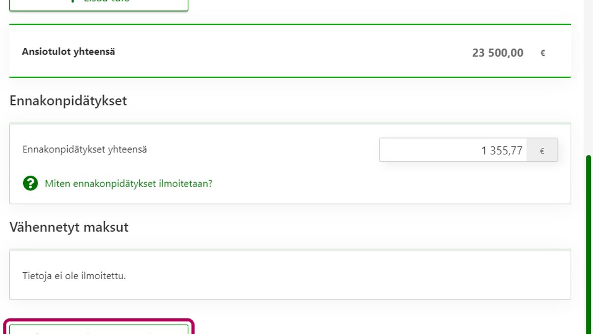 Tarkista esitäytetty veroilmoitus