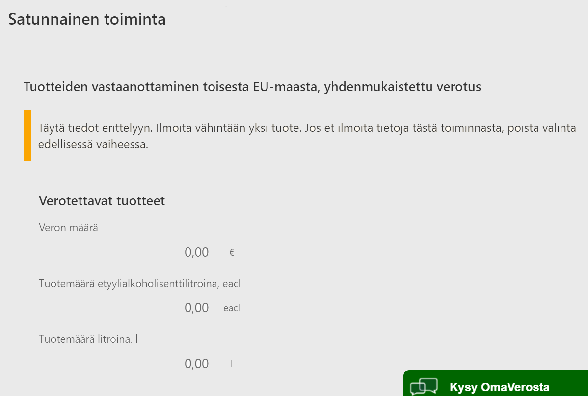 - Jos olet tilannut alkoholituotteita toisesta EU-maasta ja olet aiemmin antanut ennakkoilmoituksen, se näkyy tässä vaiheessa.