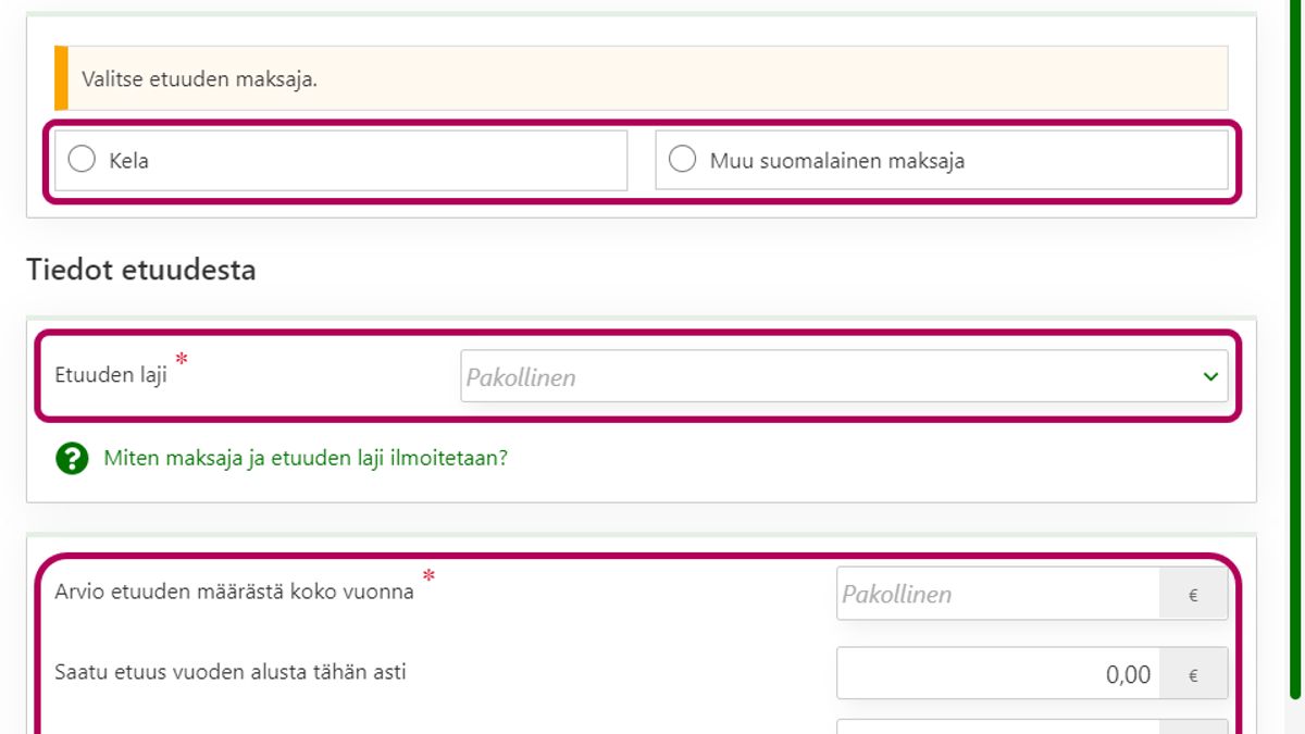 Almmut etuuden laji (ovddu šládja) ja etuuden määrä (ovddu mearri). Fuomáš, ahte sáhtát almmuhit ovddu šlája dušše oktii iešguđetge máksái.