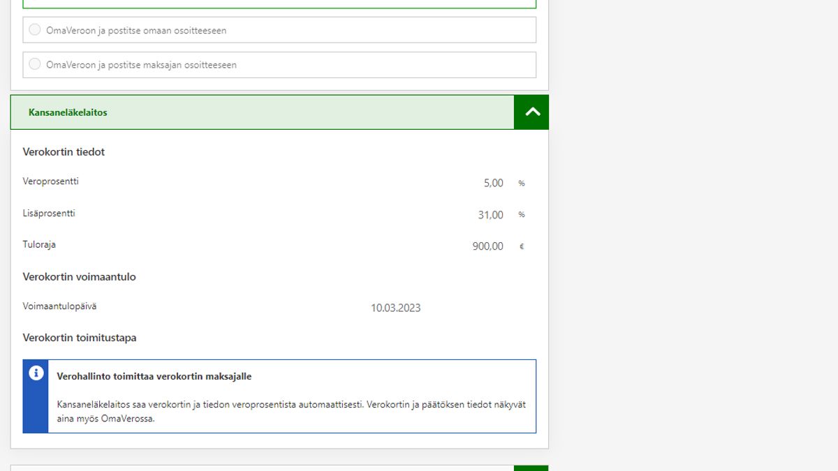 Go leat sádden dieđuid, ođđa vearrokoarta doaimmahuvvo dan vuostáiváldái, man leat válljen. Vearrokoartta dieđut oidnojit álo maiddái OmaVero-bálvalusas čuoggás Verokortit ja ennakkovero (Vearrokoarttat ja ovdavearru).