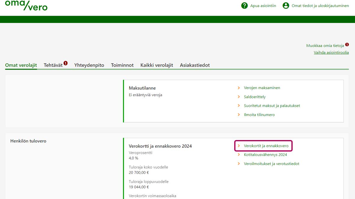 Go leat čálihan iežat sisa OmaVero-bálvalussii, oainnát dáláš vearroproseantta ja boahtorájá oasis Verokortti ja ennakkovero 2025 (Vearrokoarta ja ovdavearru 2025).