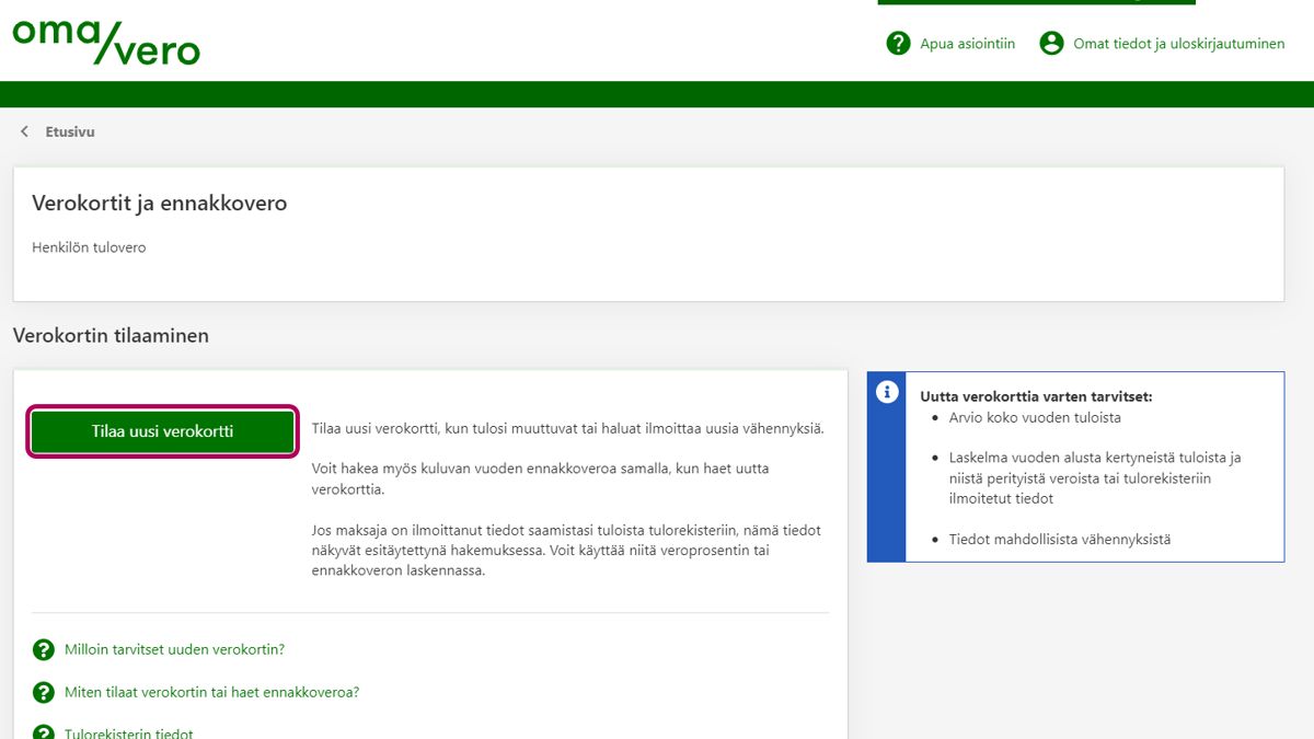 Ná gávnnat dáláš vearrokoartta dahje diŋgot ođđa vearrokoartta OmaVero-bálvalusas