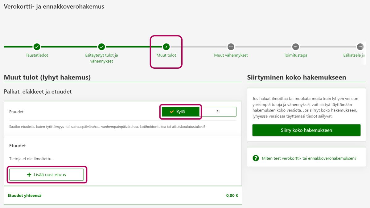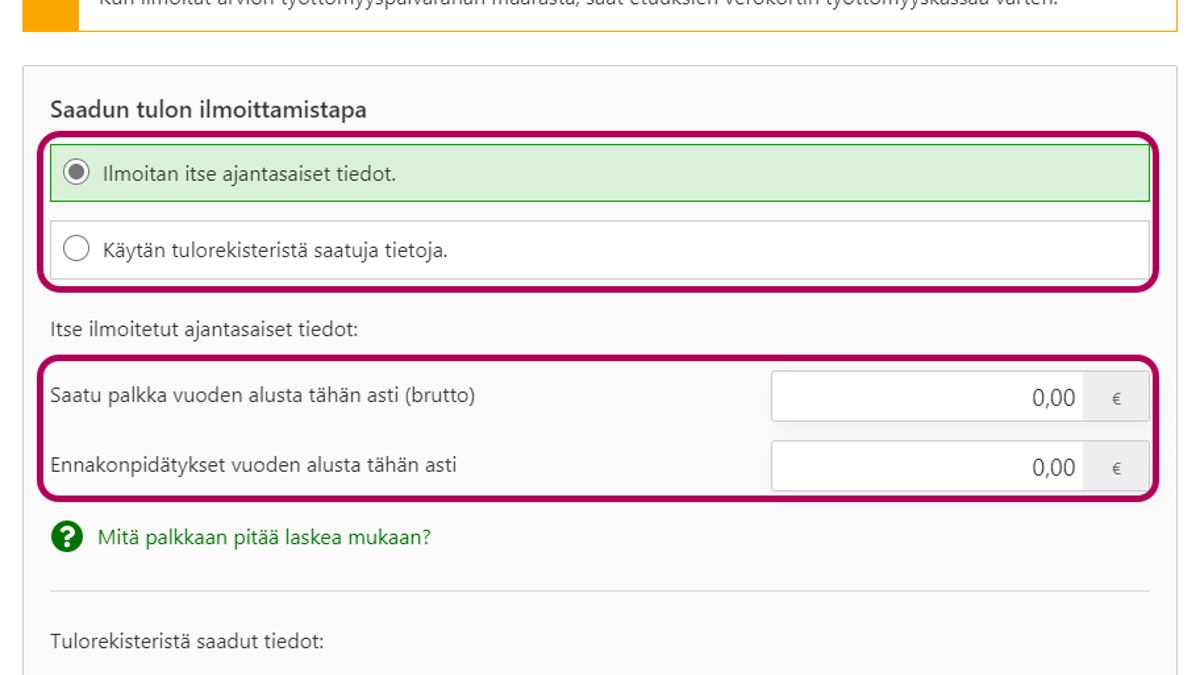 Juos leat ovddit čuoggás válljen ovddu máksi listtus, Vearrohálddahus doaimmaha vearrokoartta njuolgga máksái. Ovdamearkka dihte Kela/ÁEL oažžu du vearrokoartta dieđuid njuolgga Vearrohálddahusas.Juos leat válljen listtus Muu suomalainen maksaja (Eará suopmelaš máksi) ja čállán máksi nama (omd. Työllisyysrahasto), sáhtát válljet hálidatgo vearrokoartta du ruoktočujuhussii dahje njuolgga máksái. Dalle don fertet lasihit máksi čujuhusa dákko buohta.