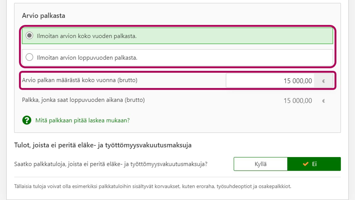 Vállje, almmuhatgo dán rádjái mákson bálkkáid ja ovdavearrogeassimiid ieš, vai geavahatgo boahtoregistarii almmuhuvvon dieđuid. Juos almmuhat dieđuid ieš, merke jagi álggu rájes mákson bálkká ja das mákson ovdavearrogeassin.