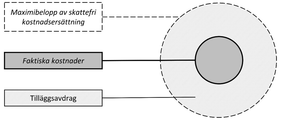 Schema 3 (De faktiska kostnaderna överstiger maximibeloppet på den skattefria kostnadsersättningen)