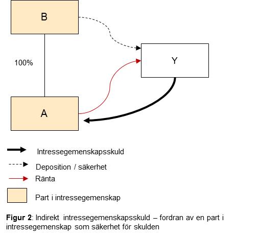 - Säkerheten för skulden är en fordran av en part i intressegemenskap (indirekt intressegemenskapsskuld).