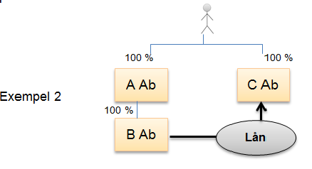 I följande exempel har samma fysiska personer bestämmande inflytande i både fordringsägarbolaget (A Ab) och gäldenärsbolaget (C Ab): NärSkL 16 § 7 punkten kan tillämpas eftersom fysiska personer utövar bestämmande inflytande i både fordringsägare A Ab och indirekt genom B Ab i gäldenärsbolaget C Ab):