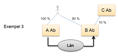 Nedan följer ett exempel på skuldförhållandet mellan bolag där en fysisk person har bestämmanderätt: