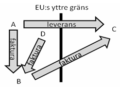 Ett finskt företag A säljer varor till ett finskt företag B, som säljer dem vidare till ett ryskt bolag C. Transportföretaget D avhämtar varorna från A på B:s uppdrag och transporterar dem direkt till Ryssland. Exporten sker i B:s namn.
