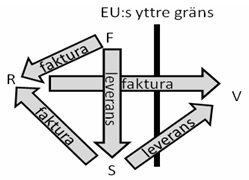 Ett svenskt företag R har sålt sågat virke till ett ryskt företag V. R köper virket från en finsk jordbrukare F som levererar virket på R:s uppdrag till ett finskt sågverk S för sågning och torkning. S fakturerar R för sågning och torkning av det ifrågavarande virket. S levererar det sågade virket till Ryssland.