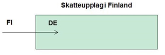 Det finländska företaget FI säljer varat till tyska DE. Varan levereras till ett skatteupplag som beläget i Finland. Försäljningen är mervärdesskattefi. Försäljaren deklarerar försäljningen i momsdeklarationen under Omsättning enligt 0-skattesats.