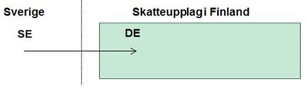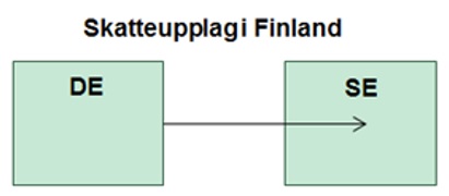Det svenska företaget SE säljer en i Sverige belägen vara till tyska DE. Varan levereras till ett skatteupplag som beläget i Finland. Köparen deklarerar det gemenskapsinterna förvärvet i momsdeklaration under Varuinköp från andra EU-länder.