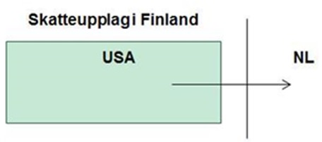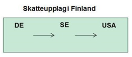 Det tyska företaget DE säljer en vara som är belägen i ett skatteupplag till svenska SE, som säljer den vidare till amerikanska USA. Varan avlägsnas inte från skatteupplaget. Båda försäljningarna är mervärdesskattefria. Bolagen har inte skyldighet att registrera sig i Finland.