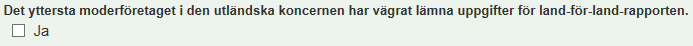 På rapporten är det möjligt att anmäla namnet på den multinationella koncern som land-för-land-rapporten gäller. Denna uppgift är frivillig.
