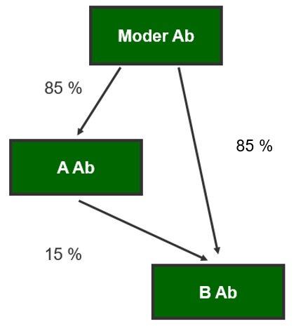 Moder Ab äger 85 procent av A Ab och 85 procent av aktiekapitalet i B Ab. Dessutom äger A Ab 15 procent av av aktiekapitalet i B Ab.