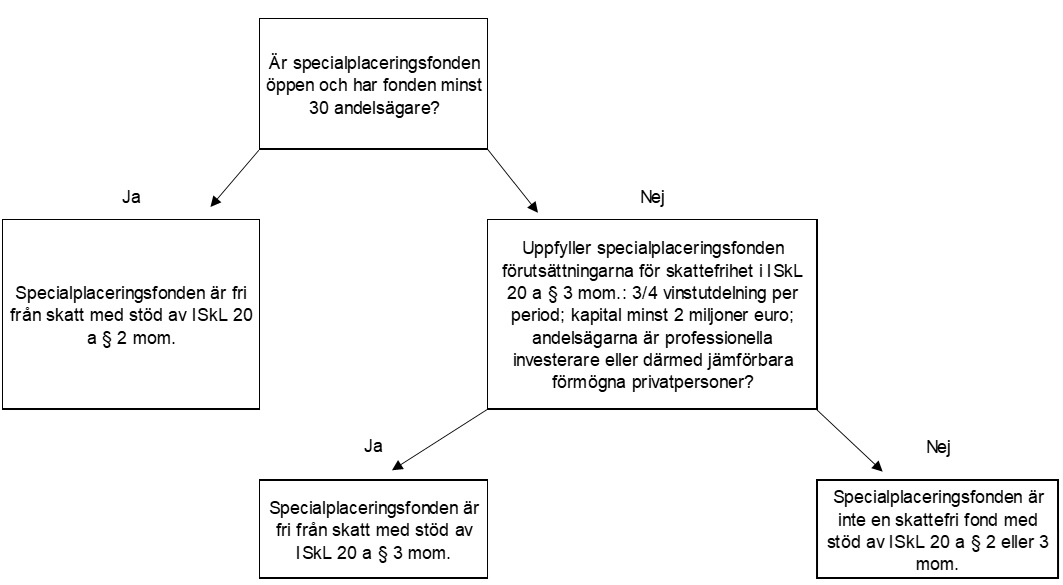 Enligt ISkL 20 a § 2 mom. är en specialplaceringsfond som avses i 2 kap. 1 § 2 mom. i AIFM-lagen fri från skatt på inkomst, om den har minst 30 andelsägare.