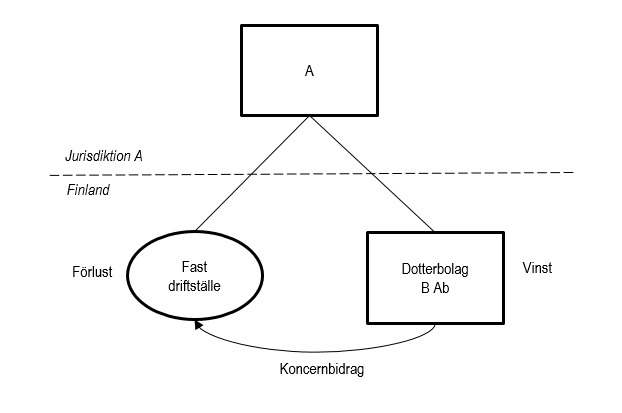 - icke-beskattningen beror på att det vid beskattningen i Finland anses att ett fast driftställe uppkommer och att inkomsten hör till det, medan det inom den andra jurisdiktionen, där verksamhet bedrivs, inte anses att ett fast driftställe uppkommer i beskattningen.