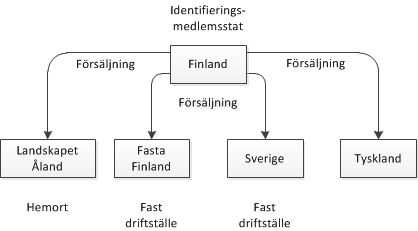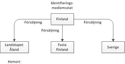 Ett företag har sätet för den ekonomiska verksamheten i landskapet Åland och det har inte fasta driftställen inom EU. Företaget registrerar sig som användare av den särskilda ordningen som en näringsidkare som är etablerad utanför EU och väljer Finland som identifieringsmedlemsstat. Företaget säljer tjänster som omfattas av den särskilda ordningen i landskapet Åland, Fastlandsfinland och i Sverige. Den särskilda ordningen används för all denna försäljning.