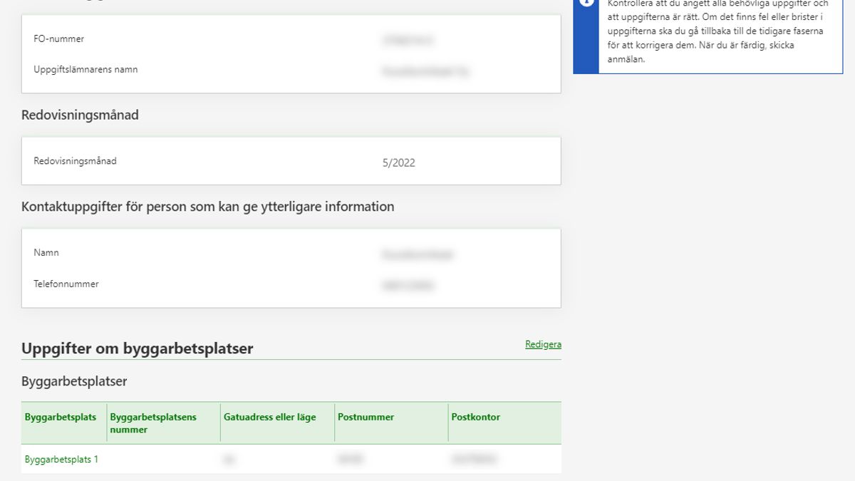 Kom även ihåg att skicka anmälan i fasen Förhandsgranska och skicka genom att välja knappen Skicka.