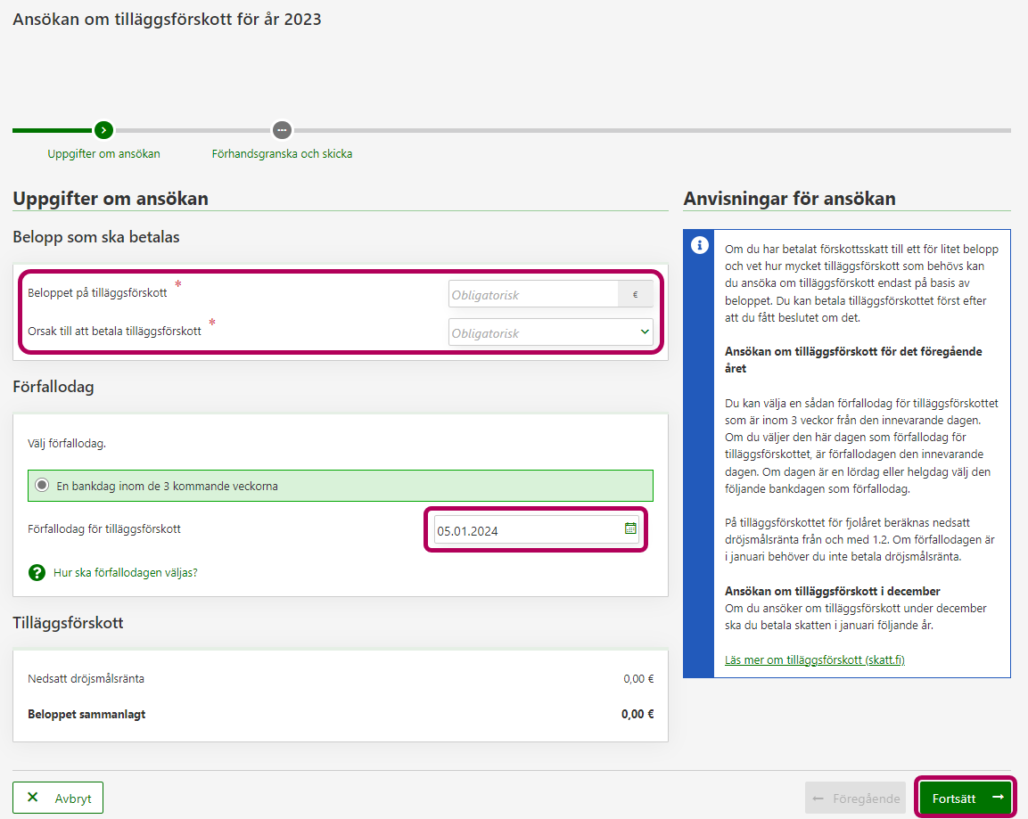 - Om du ansöker om och betalar tilläggsförskottet senast den 31 januari 2026 behöver du inte betala nedsatt dröjsmålsränta.